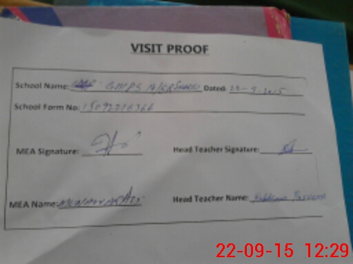 | Attendance Register | Head Teacher | MEA with School | Visit Proof |