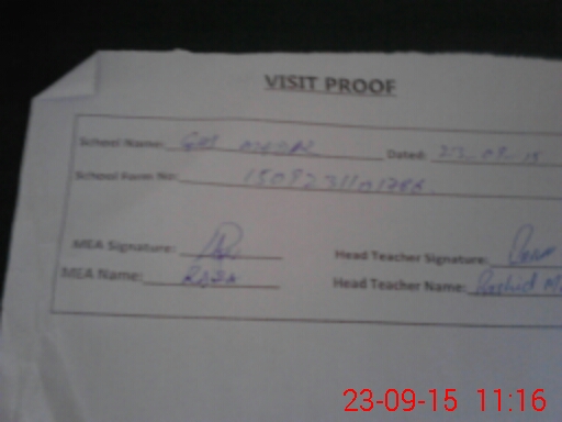 | Attendance Register | Head Teacher | MEA with School | Visit Proof |