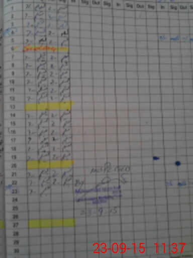 | Monitoring Date: 23-09-2015 | Start Time: 23-09-2015 11:07 AM | End Time: 23-09-2015 11:42 AM | Name of MEA: MU**** IQ**** AS**** | |