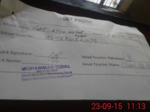| Name: NA**** AL**** Sh**** Designation: (School Headmaster's/Headmistress's) S.S.T.(genral Phone/Cell Number: 03**** |