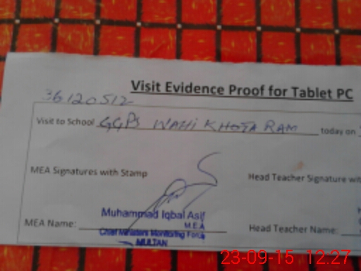 | EMIS Code: 36130512 | Name of School: GGPS WAHI KHOTA RAM | |||