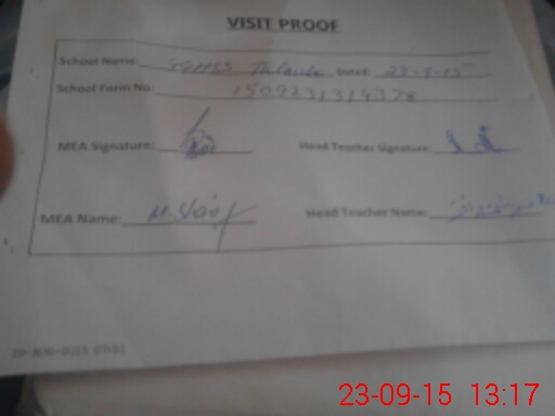 | Attendance Register | Head Teacher | MEA with School | Visit Proof |