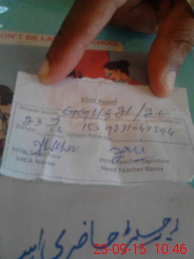 | Attendance Register | Head Teacher | MEA with School | Visit Proof |