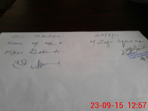 | Monitoring Date: 23-09-2015 | Start Time: 23-09-2015 12:38 PM | End Time: 23-09-2015 12:59 PM | Name of MEA: Kh**** Ba**** Kh**** | |