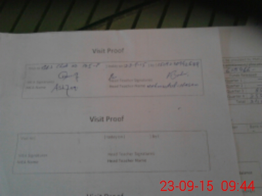 | Attendance Register | Head Teacher | MEA with School | Visit Proof |