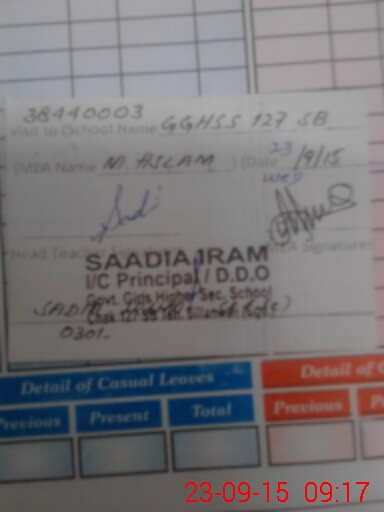 | Name: SA**** IR**** Designation: (School Headmaster's/Headmistress's) I/C PRINCIPAL Phone/Cell Number: 03**** |