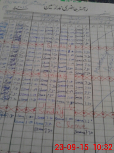 | CNIC | Full Name | Designation | R/C | Absence During Last Calender Month |