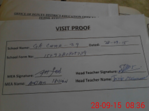 | Attendance Register | Head Teacher | MEA with School | Visit Proof |