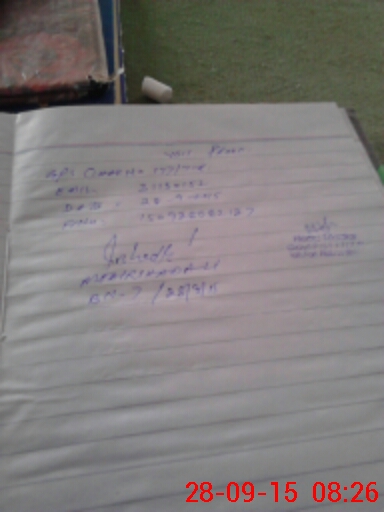 | Monitoring Date: 28-09-2015 | Start Time: 28-09-2015 08:00 AM | End Time: 28-09-2015 08:36 AM | Name of MEA: Ir**** Al**** BN**** 07 | |