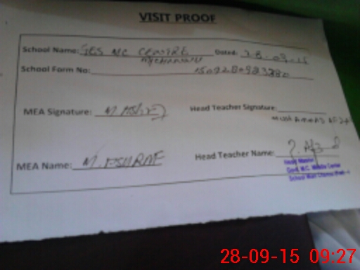 | Attendance Register | Head Teacher | MEA with School | Visit Proof |