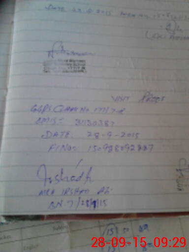 | Monitoring Date: 28-09-2015 | Start Time: 28-09-2015 08:58 AM | End Time: 28-09-2015 09:32 AM | Name of MEA: Ir**** Al**** BN**** 07 | |