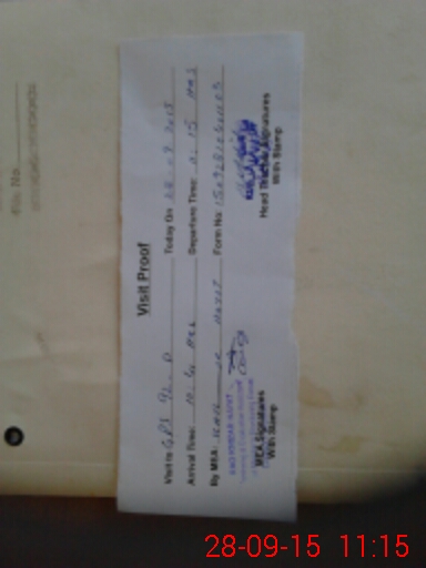 | Monitoring Date: 28-09-2015 | Start Time: 28-09-2015 10:40 AM | End Time: 28-09-2015 11:15 AM | Name of MEA: Kh**** Ha**** (R**** | |