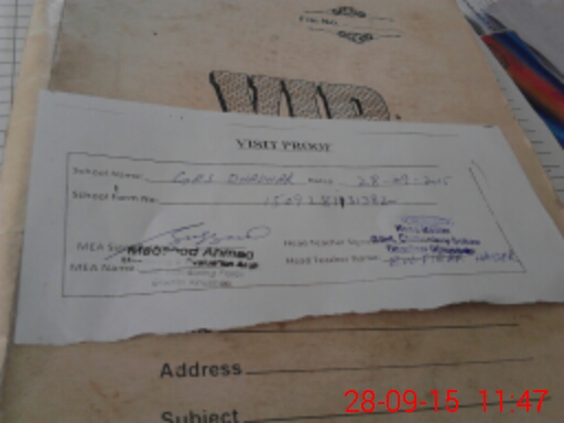 | Attendance Register | Head Teacher | MEA with School | Visit Proof |