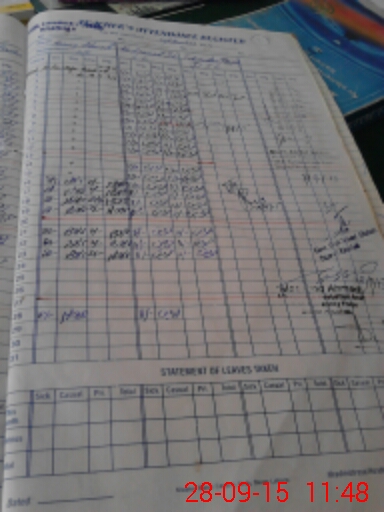 | CNIC | Full Name | Designation | R/C | Absence During Last Calender Month |