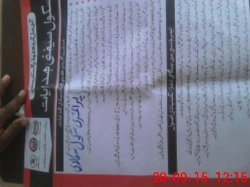 | Name: IB**** AH**** Designation: (School Headmaster's/Headmistress's) PTC/JV Phone/Cell Number: 03**** |