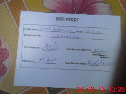 | Attendance Register | Head Teacher | MEA with School | Visit Proof |
