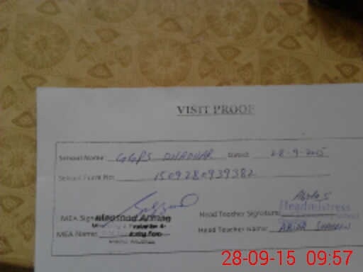 | Attendance Register | Head Teacher | MEA with School | Visit Proof |