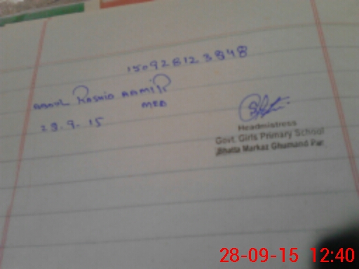 | Name: Am**** Sa**** Designation: (School Headmaster's/Headmistress's) PTS Phone/Cell Number: 03**** |