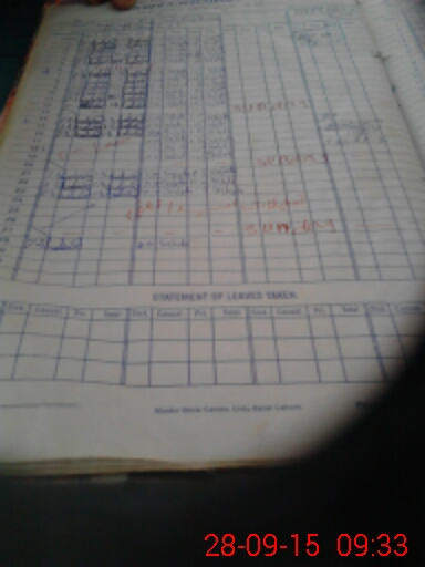 | CNIC | Full Name | Designation | R/C | Absence During Last Calender Month |