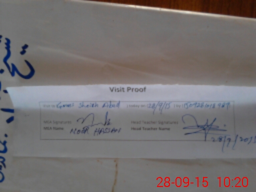 | Attendance Register | Head Teacher | MEA with School | Visit Proof |