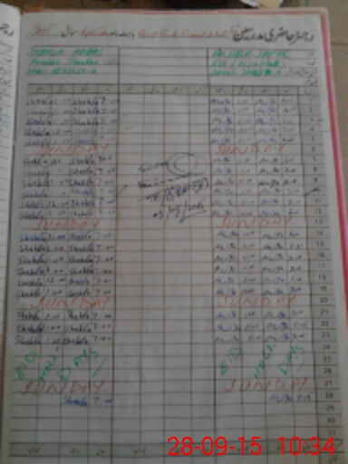 | CNIC | Full Name | Designation | R/C | Absence During Last Calender Month |