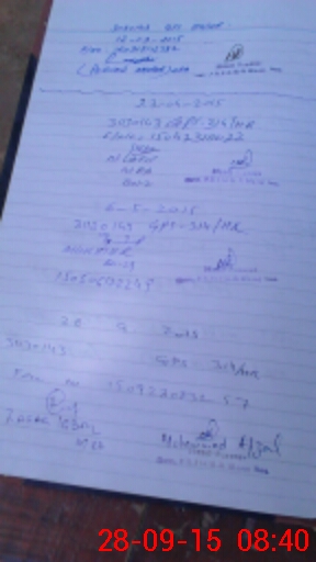 | Monitoring Date: 28-09-2015 | Start Time: 28-09-2015 07:52 AM | End Time: 28-09-2015 08:41 AM | Name of MEA: Za**** Iq**** BN**** | |