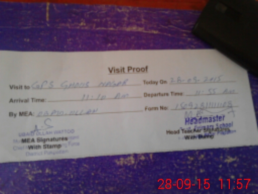 | Attendance Register | Head Teacher | MEA with School | Visit Proof |