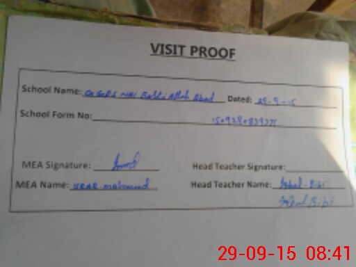 | Attendance Register | Head Teacher | MEA with School | Visit Proof |