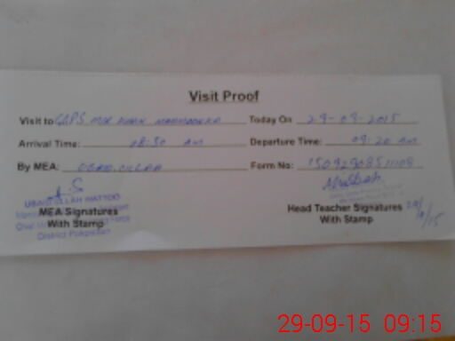 | Attendance Register | Head Teacher | MEA with School | Visit Proof |