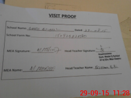 | Attendance Register | Head Teacher | MEA with School | Visit Proof |