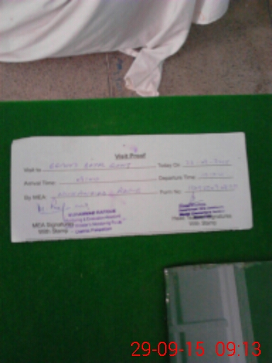| Monitoring Date: 29-09-2015 | Start Time: 29-09-2015 09:07 AM | End Time: 29-09-2015 10:23 AM | Name of MEA: Mu**** Ra**** | |