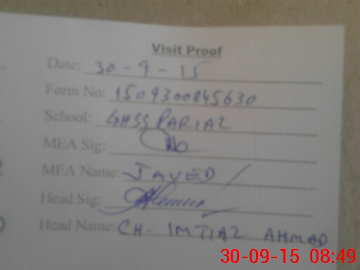| Attendance Register | Head Teacher | MEA with School | Visit Proof |