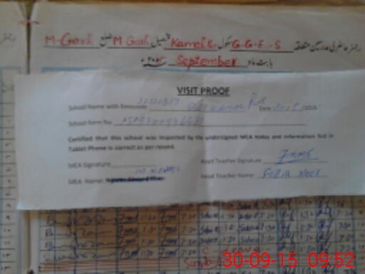 | Attendance Register | Head Teacher | MEA with School | Visit Proof |