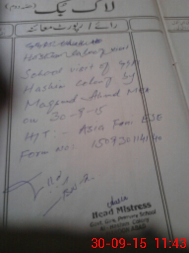 | EMIS Code: 31140293 | Name of School: GGPS HASHAM COLONY | |||