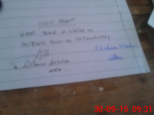 | Monitoring Date: 30-09-2015 | Start Time: 30-09-2015 08:57 AM | End Time: 30-09-2015 10:03 AM | Name of MEA: MU**** SA**** AK**** 13**** | |
