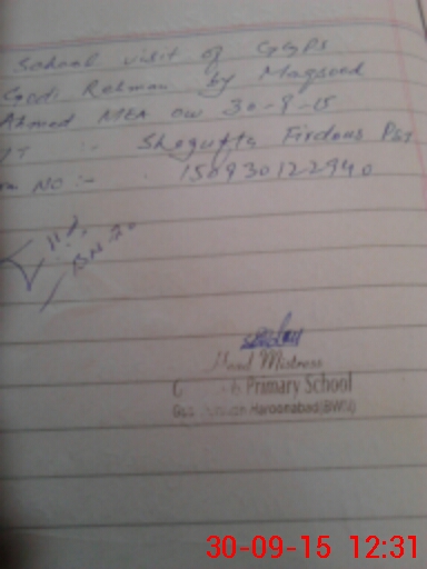 | EMIS Code: 31140292 | Name of School: GGPS GODI REHMAN HAROON ABAD | |||