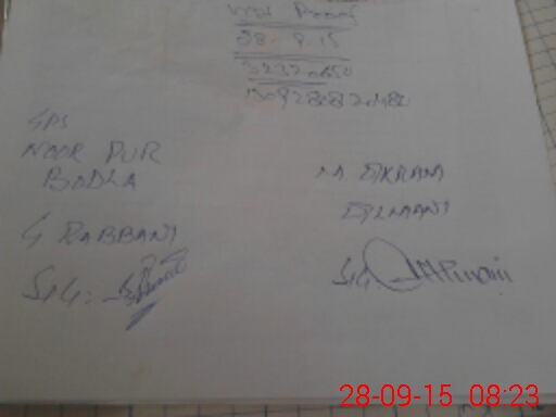 | Monitoring Date: 28-09-2015 | Start Time: 28-09-2015 07:42 AM | End Time: 28-09-2015 08:28 AM | Name of MEA: M.Ak**** Al**** | |