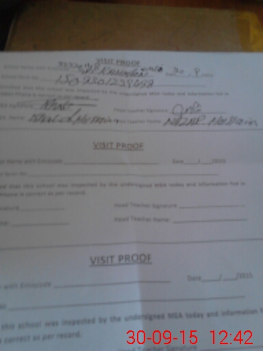 | Attendance Register | Head Teacher | MEA with School | Visit Proof |