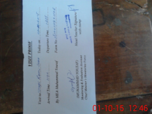 | School Visited by School Health & Nutrition Supervisor (No. of Visits) | 1 | Name1: | M Ramzan | Name2: | |