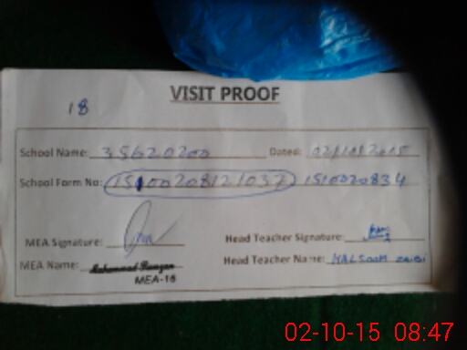 | Attendance Register | Head Teacher | MEA with School | Visit Proof |
