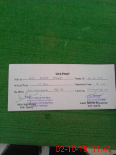 | School Visited by School Health & Nutrition Supervisor (No. of Visits) | 1 | Name1: | M Shoaib Abuzer | Name2: | |