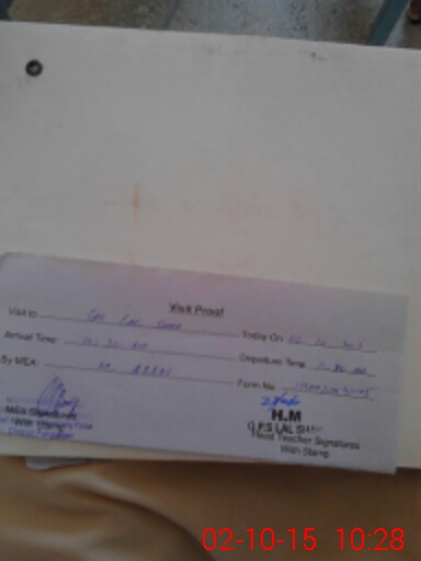 | School Visited by School Health & Nutrition Supervisor (No. of Visits) | 1 | Name1: | SAYYED FARHAN | Name2: | NIL |