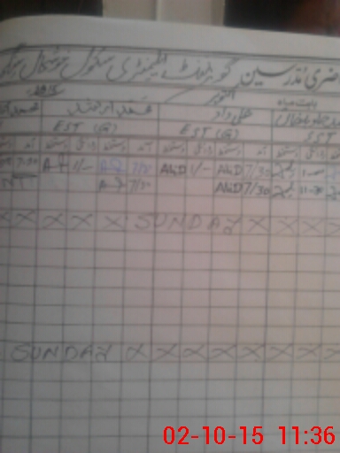 | CNIC | Full Name | Designation | R/C | Absence During Last Calender Month |