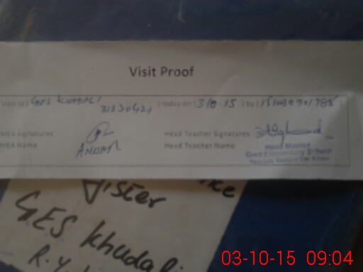 | School Visited by School Health & Nutrition Supervisor (No. of Visits) | 1 | Name1: | NAVEED HUSSAIN | Name2: | |