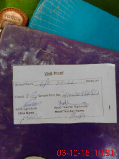 | Attendance Register | Head Teacher | MEA with School | Visit Proof |