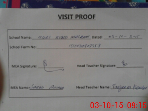 | Attendance Register | Head Teacher | MEA with School | Visit Proof |
