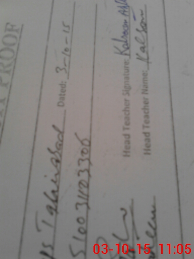 | Name: AS**** IQ**** Designation: (School Headmaster's/Headmistress's) PST Phone/Cell Number: 03**** |