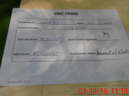 | Attendance Register | Head Teacher | MEA with School | Visit Proof |