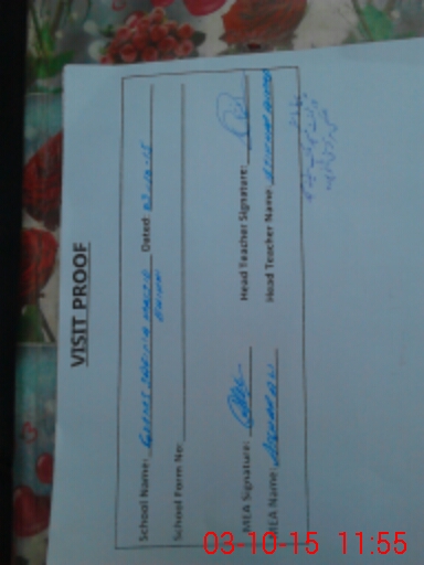 | School Visited by School Health & Nutrition Supervisor (No. of Visits) | 1 | Name1: | HAFIZ KHURRAM SHAHZAD | Name2: | |