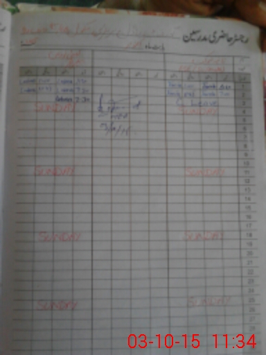 | CNIC | Full Name | Designation | R/C | Absence During Last Calender Month |